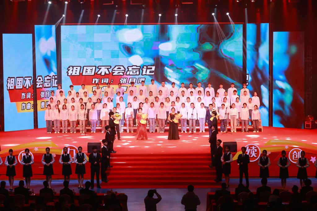 女声独唱《如愿》清澈纯净,传递出对未来的美好期许。情景表演《顺德师范:璀璨百年的教育华章》由顺德师范校友代表倾情呈现,展现了师范百年辉煌历程和教育成果。男女声重唱《往日时光》深情款款,带领观众穿越时光隧道,感受岁月变迁。合唱《祖国不会忘记》以热情的歌声表达全体师生对祖国的深情祝福和对母校的自豪之情,将大会气氛推向高潮。