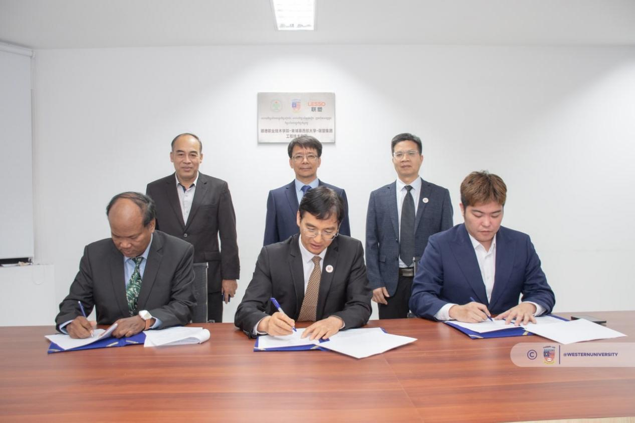 同日,必赢官网、柬埔寨西部大学、联塑集团(柬埔寨)科技实业有限公司在柬埔寨签约共建“海外工程技术学院”。