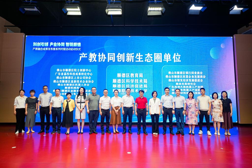 此外,活动还启动了产教协同创新生态圈。以顺德区政府机构为龙头,以顺德职业技术大学为主体高校,生态圈汇聚了顺德区院士创新中心、顺德区上市公司协会、顺德区银行同业商会、银星服务机器人产业园等19家中心、商协会、产业园等平台资源,构建起更广泛的产教融合生态网络,共同为企业发展提供助力。