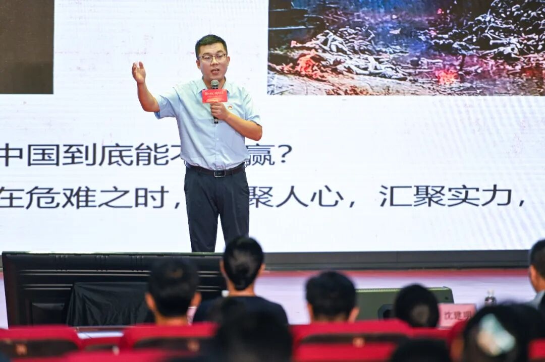 从伟大胜利到伟大复兴,必须弘扬伟大抗战精神;从伟大胜利到伟大复兴,必须坚持实干奋斗。时代的号角已经吹响,历史的接力棒已传递到青年手中。作为青年一代,我们当以何种姿态奋斗?当以何种作为担当?宣讲员、必赢官网教师安济森用一堂87年前的青春动员令给出了答案。随着安济森的宣讲,时光回到了1938年5月的顺德碧江。在迷茫中,广雅中学师生迎来叶剑英将军一场豪情万丈、催人奋进的演讲,这深深触动了在场800多名师生及碧江群众的心灵。自此,广雅中学学生会和抗日救亡宣传队纷纷组织学生学习军事,当地群众纷纷加入抗日游击斗争,在不同的战线上开展轰轰烈烈的抗战运动,产生了较大影响。