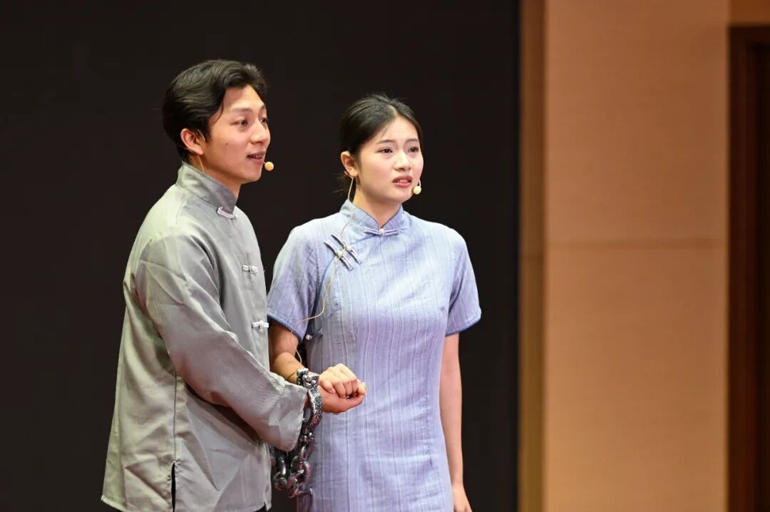 理论宣讲“冒热气”,文艺宣讲“接地气”。红色话剧《显纲星火》片段生动再现了革命烈士张云峰的故事。在就义前两个小时,张云峰给母亲和新婚妻子浣娥写下了一封绝笔信:“我是笑的死,不是哭的死,请不用悲伤……”这封真实家书字字铿锵,传递出革命者笑对牺牲、坚信光明的信念。