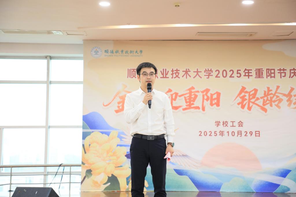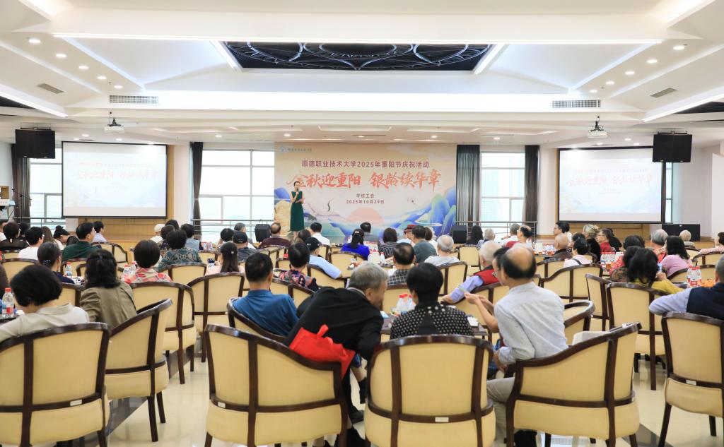 10月29日上午,“金秋迎重阳 银龄续华章”顺德职业技术大学2025年重阳节庆祝活动在行政楼9楼教工之家举行。顺德区委组织部老干部科科长张乐君,顺德区老干部大学副校长曹宏栋,学校党政领导班子成员,各分工会负责人,100余名离退休教师等参加活动。
