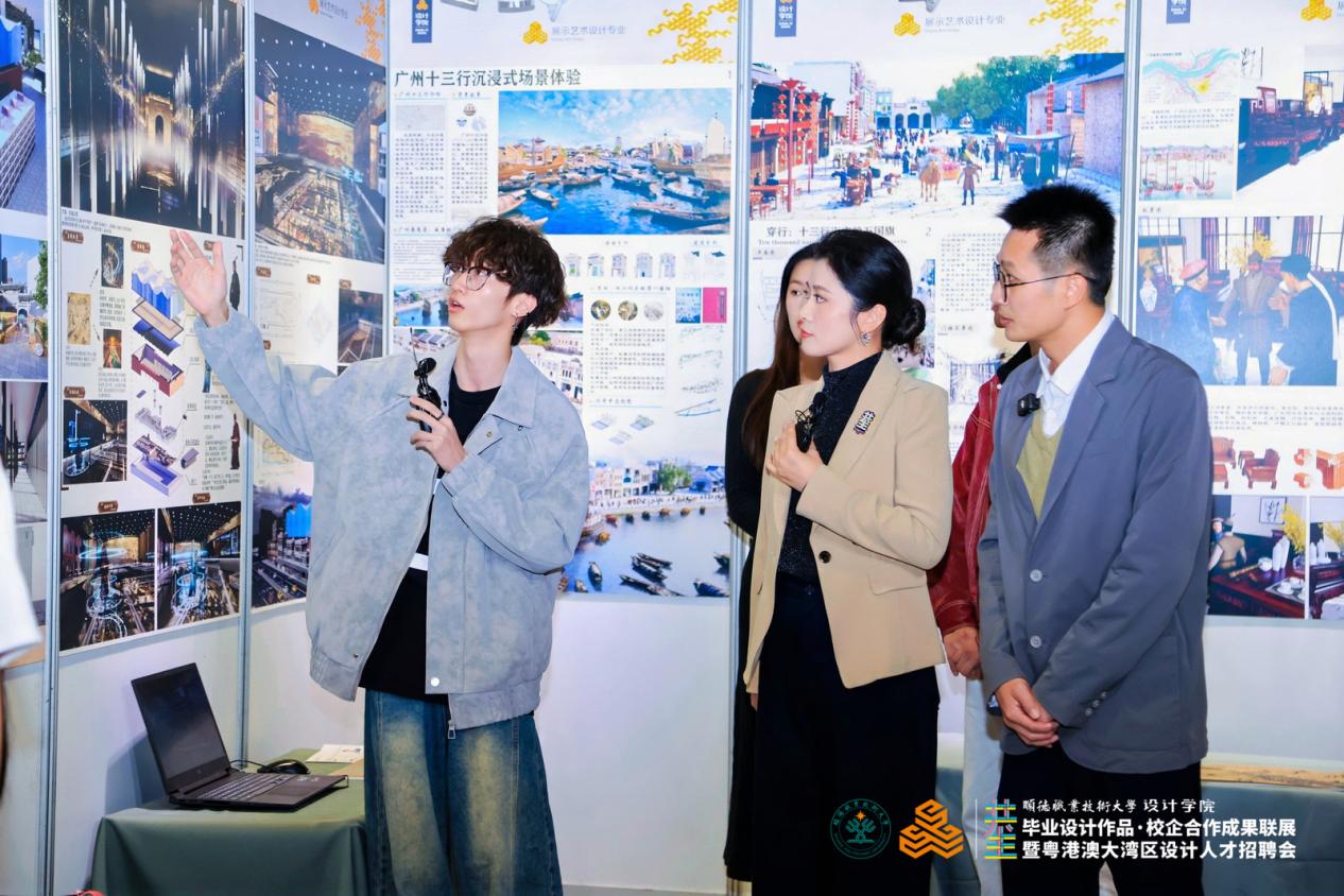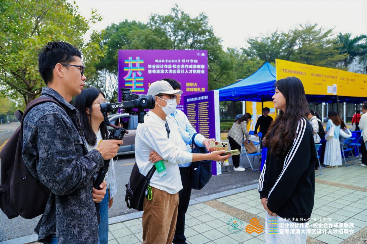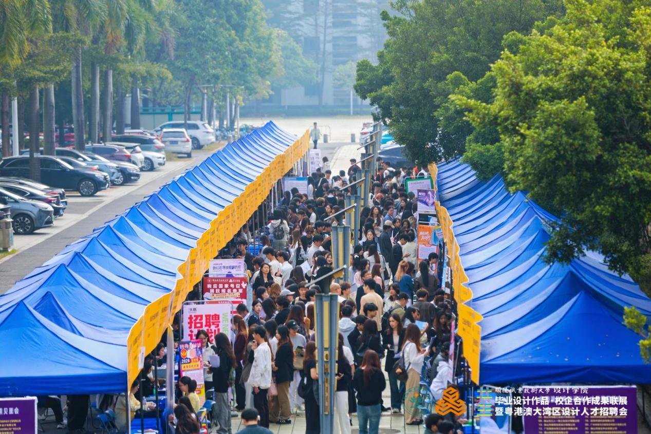 招聘会现场人气旺盛,118家来自粤港澳大湾区的设计企业、文化创意公司、科技企业等现场设招聘摊位,毕业生们纷纷向心仪岗位投递简历。企业代表通过观摩毕业设计作品,直观评估学生创意能力与实践水平,实现精准人才对接。