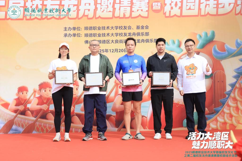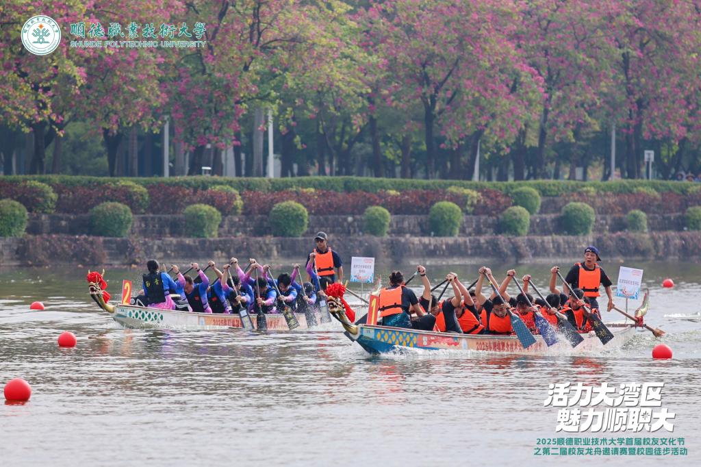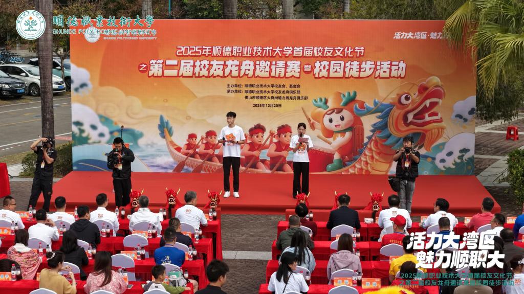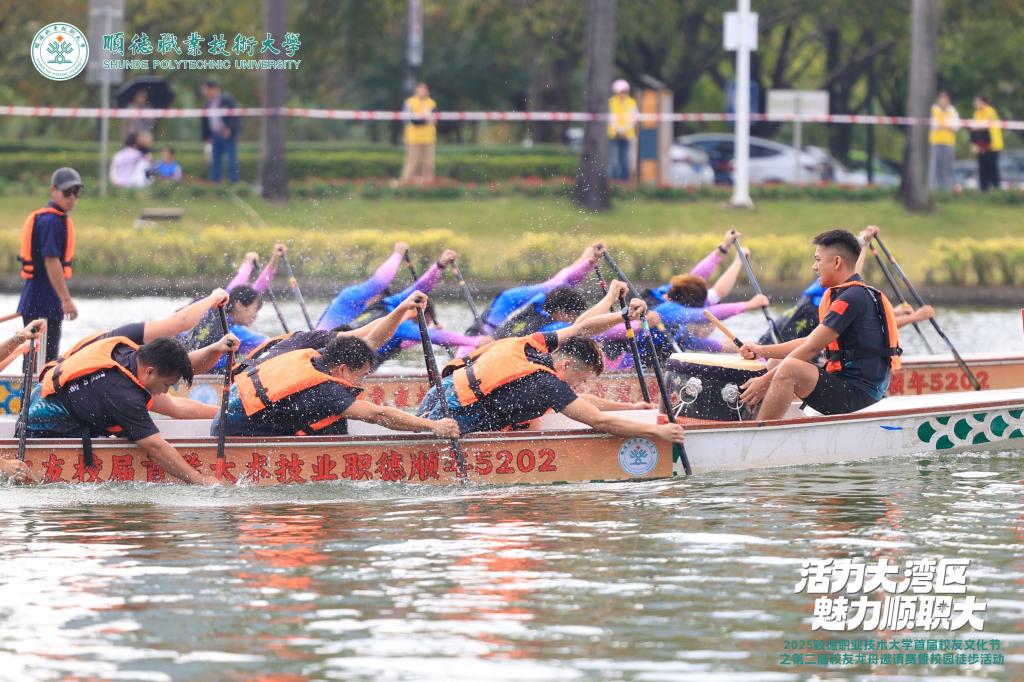 冬日暖阳,情谊如初。12月20日,顺德职业技术大学首届校友文化节之第二届校友龙舟邀请赛暨校园徒步活动举行。22支龙舟队在碧桂园湖挥桨竞渡,生动诠释同心协力、奋楫争先的龙舟精神;校友家庭沿校内景观路线打卡徒步,在行走交流中共赏校园美景、重温同窗记忆。从水上竞渡到岸边同行,校友们凝心聚力的姿态与母校在新阶段推进内涵建设、提升办学质量的奋进步伐交相辉映,共同展现出职业本科大学建设新征程上校友与母校协同并进的蓬勃气象。