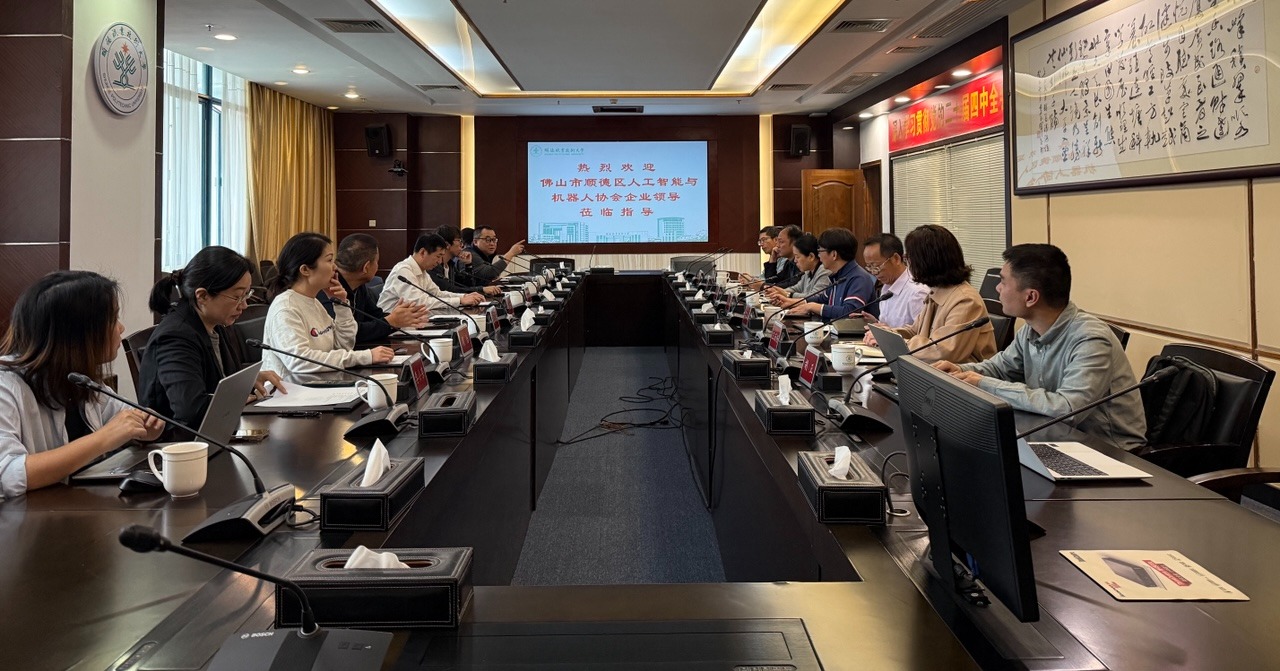 12月19日上午,顺德职业技术大学与顺德区人工智能与机器人协会企业专场交流会在行政楼1-117会议室举行。校党委委员、副校长、科协主席杨小东,顺德区科协秘书长黎志冲,佛山市顺德区人工智能与机器人协会秘书长陶渊明出席会议。