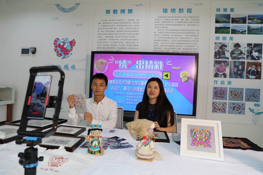 据悉,两校联合举办此次电商直播活动,直播产品全部来自贵州省从江县加勉乡入选国家级非物质文化遗产名录的苗绣艺术品。举办此次活动,旨在通过现代技术手段,助力偏远山区的非遗产品走出“大山”,走进千家万户,同时搭建起青年学生实践长才干,青春助力脱贫攻坚的平台,引领广大青年投身到脱贫攻坚的实践课堂,筑梦脱贫攻坚路,营造“青春助力脱贫、共奔幸福小康”的浓厚氛围,让青春之花在脱贫攻坚主战场上绚丽绽放。