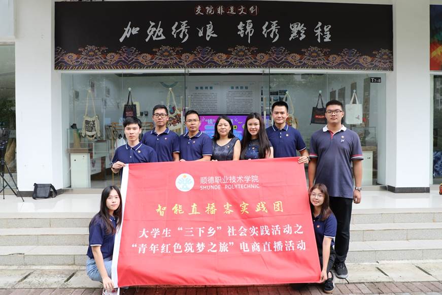 为深入学习贯彻习近平总书记在脱贫攻坚座谈会上的重要讲话精神,充分发挥大学生暑期文化科技卫生“三下乡”活动品牌效应和示范功能,引领教育广大青年学生勇担民族复兴大任,切实在服务乡村振兴战略,助力脱贫攻坚等社会大课堂中受教育、长才干、做贡献。根据教育部司局函件《关于开展“青年红色筑梦之旅”电商直播活动的通知》、团省委等部门下发的《关于开展2020年广东大中专学生志愿者暑期文化科技卫生“三下乡”社会实践活动的通知》等文件精神,8月4日上午,由366net必赢手机版团委、创新创业学院,贵州交通职业技术学院团委联合主办,366net必赢手机版智能制造学院团委承办的大学生暑期“三下乡”社会实践活动之“青年红色筑梦之旅”电商直播活动在贵州“加勉绣娘”锦绣黔程非遗文创展示厅举行。366net必赢手机版智能制造学院党总支书记宋玉宏,必赢官网和贵州交通职业技术学院团委相关负责人,非遗刺绣大师王靖,贵州锦绣黔程文化传媒公司创始人董国森,两校师生代表等共计30多人参与了此次活动。
