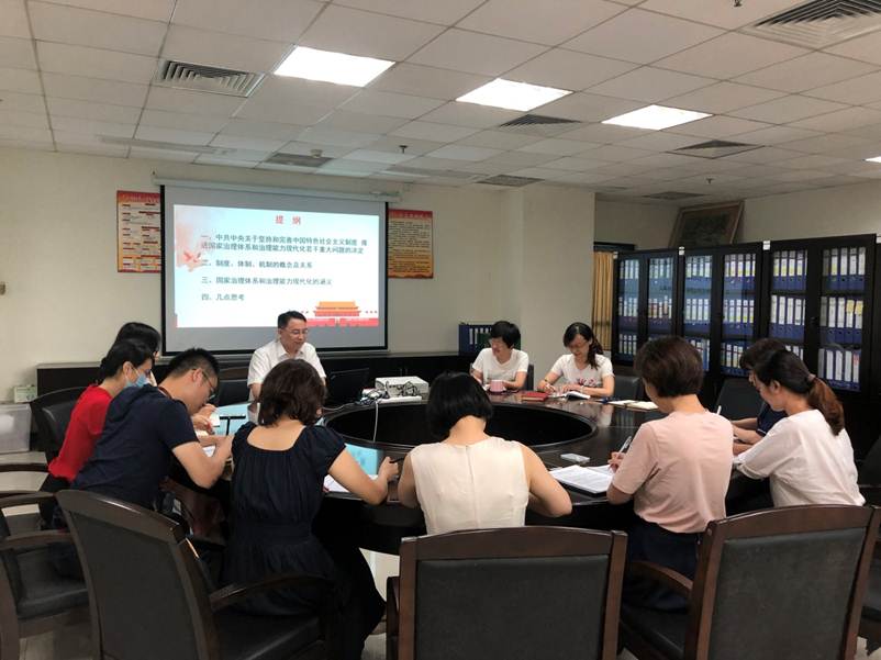 会上,肖坤带领部门全体成员学习了《中共中央关于坚持和完善中国特色社会主义制度 推进国家治理体系和治理能力现代化若干重大问题的决定》的文件精神,阐明了中国特色社会主义制度和国家治理体系是以马克思主义为指导、植根中国大地、具有深厚中华文化根基、深得人民拥护的制度和治理体系,社会主义制度具有其他制度无法比拟的优越性,全体党员干部要在党的领导下全面实现国家治理体系和治理能力现代化,使中国特色社会主义制度更加巩固、优越性充分展现。