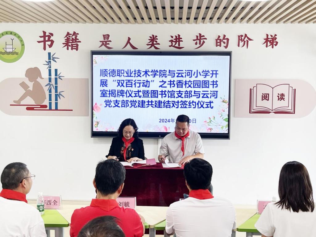 10月30日,在学校党委副书记刘毓的带领下,行政二党总支一行前往云浮市新兴县,与云河小学举行“双百行动”之书香校园图书馆揭牌仪式。图书馆党支部与云河小学党支部进行党建结对共建签约。