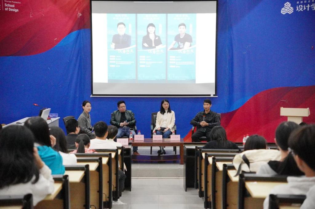 在交流互动环节,三位嘉宾不仅以亲身经历为同学们解惑,帮助学生树立正确的择业观,并提供了多个实习和就业岗位,助力设计学子顺利实习和就业。