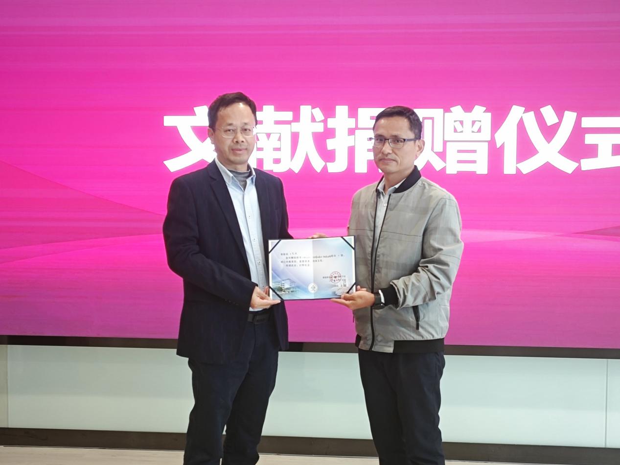 活动现场,王茂浪向学校捐赠《何以万亿: 高质量发展的“顺德经验”》等6册图书。李旋波代表学校接受捐赠,并向对方颁发赠书纪念证书,以表感谢。这些图书将珍藏于“顺商文献主题馆”,供师生借阅研习。