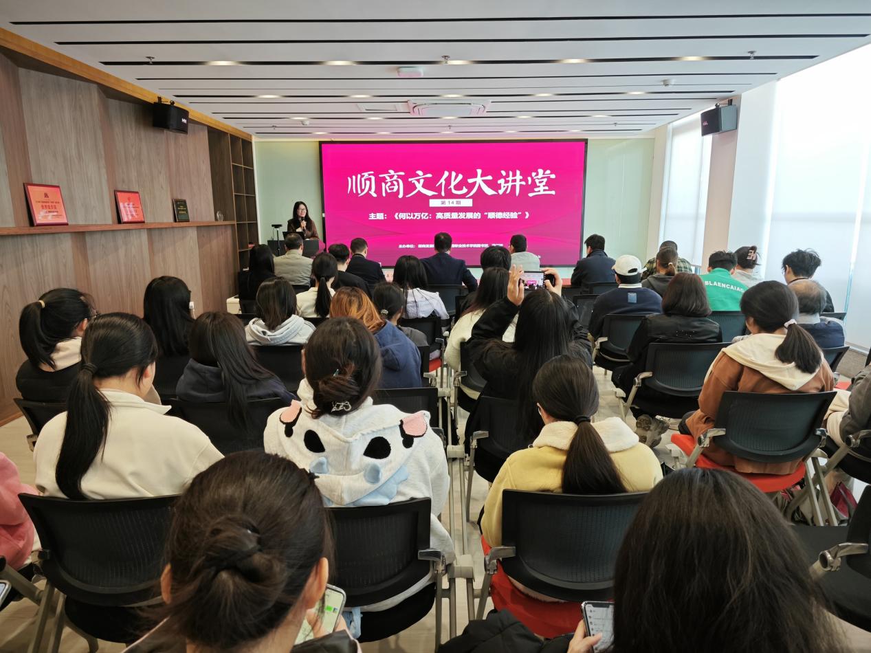 李旋波在活动致辞中表示,顺商文化大讲堂坚持“思政铸魂,文化涵养”理念,传承顺商文化,弘扬顺商精神,致力于提升大学生综合素质,培养高素质技术技能人才,推动产城教融合的高质量发展。他指出,本次活动主题紧扣国家高质量发展的时代脉搏,恰逢其时,深入探讨顺德在高质量发展进程中的宝贵经验与成功做法,并鼓励师生积极汲取顺商文化智慧,为个人成长与事业发展注入强劲动力。