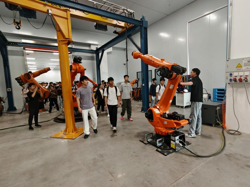 “在库卡车间看到整排工业机器人协同作业的场景时,我真切感受到‘智能制造’不是课本里的抽象概念,而是实实在在的产业生产力。”2025级机器人技术1班学生代表李同学表示,“工程师讲解的数字孪生技术在产线调试中的应用,让我明白了专业课程里的建模知识如何落地到实际生产,这也让我对后续选修模块的‘工业机器人产线’的实训,有了更清晰的目标。”