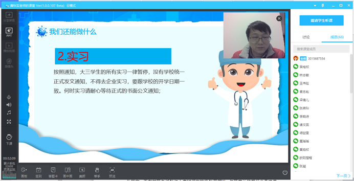 三是聚焦学生主业,突破时空限制实践学习新模式。一方面,做好疫情防控期间在线教学准备活动。根据教育部关于“停课不停教、停课不停学”的要求,我院组织任课老师开展网络教学工作。要求学生提前熟悉授课平台,严格遵守课堂秩序,保质保量完成学习任务。目前,我院任课教师已通过学校搭建的网络课程在线教学综合平台建立相应的课群,并结合学生的网络使用情况,尽可能实现以资源推送与异步互动为主的线上教学模式,确保将“停课不停教、不停学”的要求落早落实落细!另一方面引导毕业生做好实习与就业准备,班主任要求学生严格遵守学校和实习单位出台的相关规定,引导学生要充分认识到经济下行压力日益增加和疫情蔓延趋势对毕业生就业带来的影响,鼓励学生充分把握时间,强化学习意识,提升就业能力。