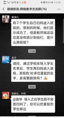 第一阶段:自2020年2月6日起,组建“顺德职院-网络教学交流群”,引入高等教育出版社、智慧职教多位专家加入,通过腾讯课堂直播学习,掌握在职教云平台上快速建设课程的方法,掌握正确运用职教云平台开展网络教学的方法。